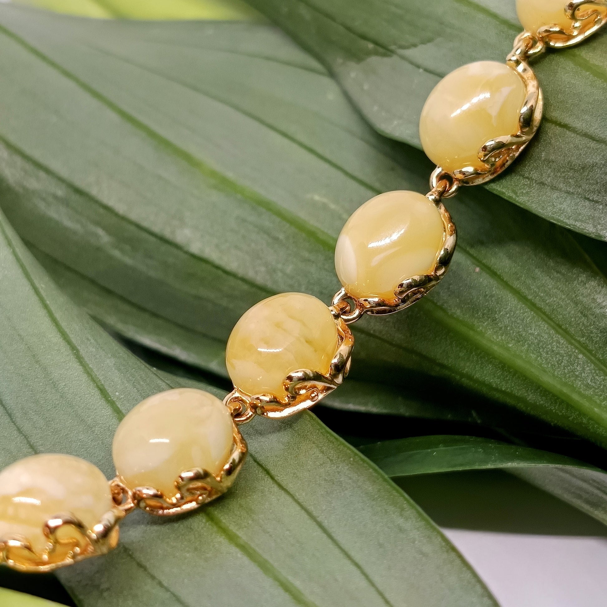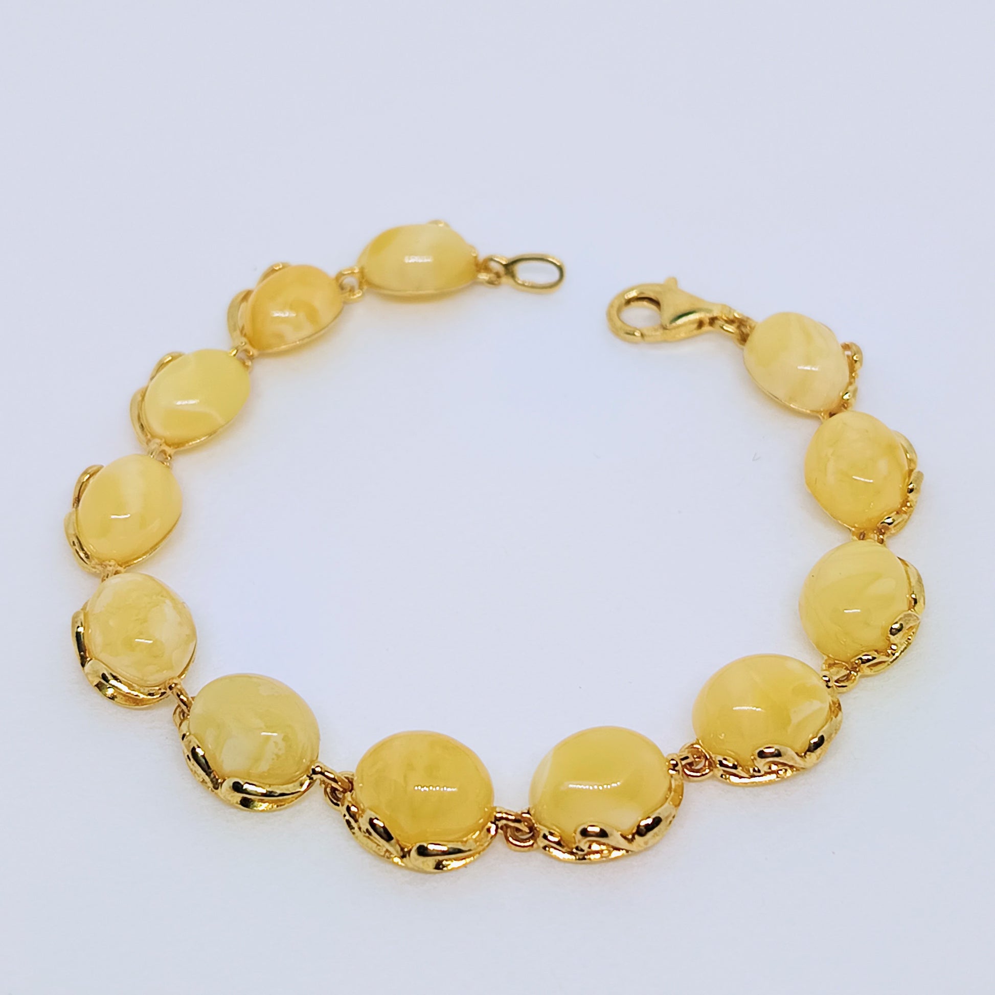 White amber bracelet, gold-plated sterling silver 925, butterscotch
