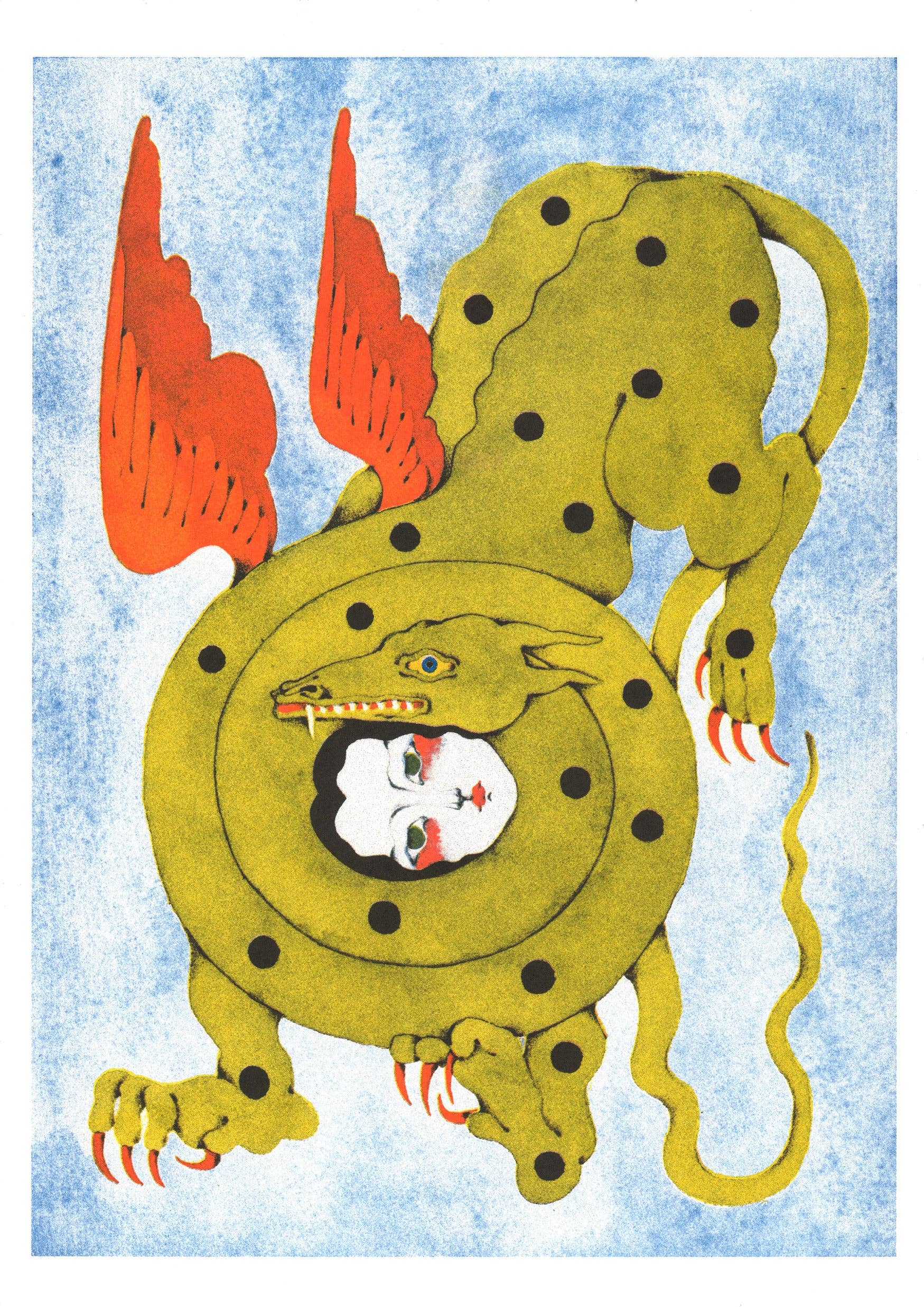 Risographie-Druck vom KIBLIND Atelier auf Munken Print White 150 g/m² Papier. Format A3 – 29,7 x 42 cm. Das Poster wird verpackt mit stabiler Pappe geliefert.