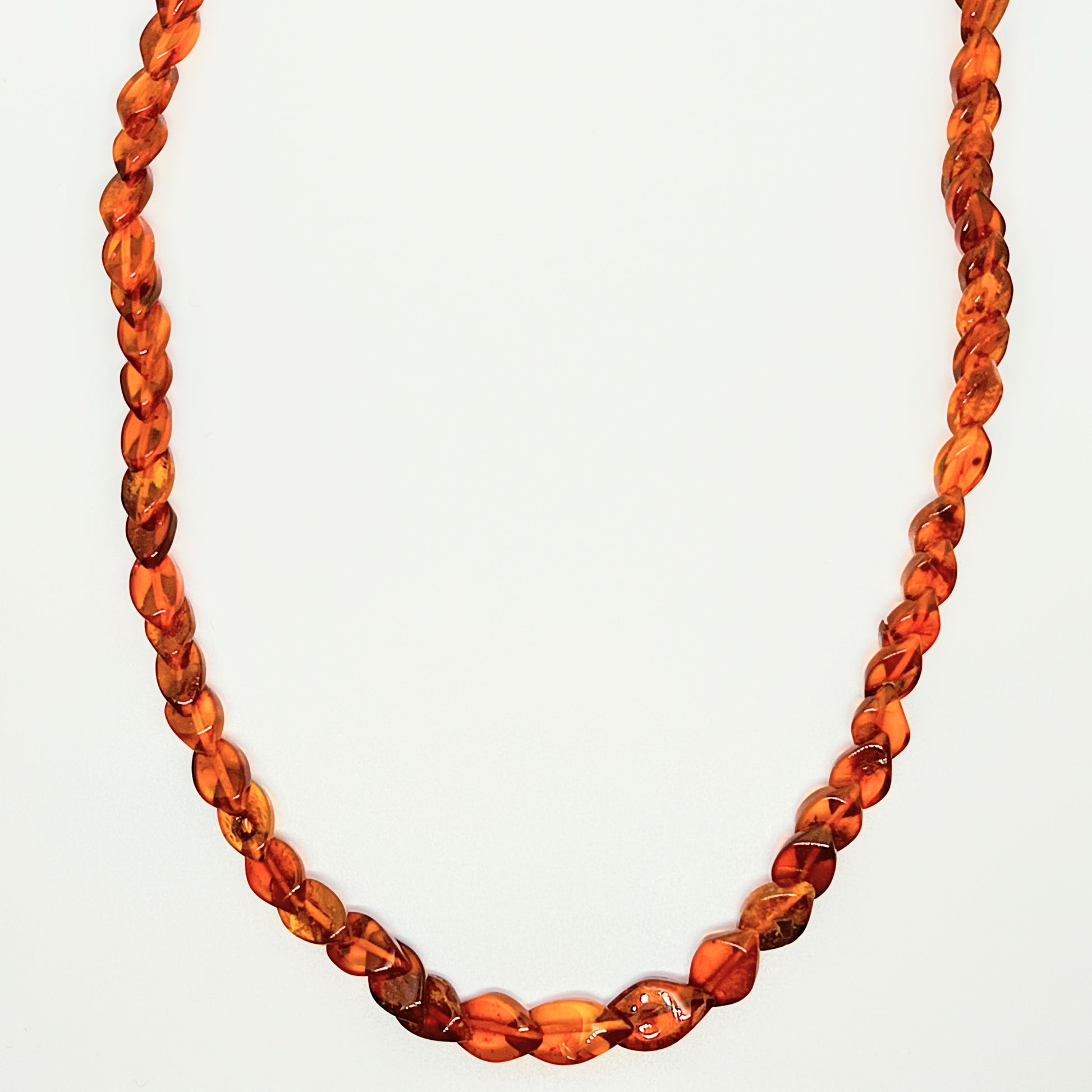 Unsere natürliche, baltische Cognac-Bernsteinkette ein elegantes 45 cm großes Stück, das Dich glücklich machen wird. Das spitzenförmige Design mit polierter Oberfläche unterstreicht die authentische Schönheit von Bernstein und zieht alle an, die nach edlem Schmuck suchen. Jeder Halskette liegt ein Echtheitszertifikat bei, das die Herkunft des Bernsteins garantiert. Dieses Schmuckstück aus natürlichem Bernstein zeichnet sich durch seine satte Cognac-Farbe aus und verleiht jedem Outfit einen Hauch von Raffinesse. Um den Glanz dieser Halskette zu erhalten, empfiehlt es sich, zur Reinigung ein feuchtes Tuch zu verwenden und chemische Produkte zu vermeiden. Eine Aufbewahrung vor direktem Licht und Stößen wird ebenfalls empfohlen.