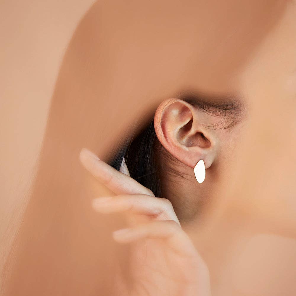 De la CORE COLLECTION de Nadja Carlotti - La parure est composée de 3 petites boucles d'oreilles clous asymétriques dorées à l'or fin. Le motif est inspiré des petits cailloux. Fines, sobres et légères, ces boucles d'oreilles ont ce petit détail qui fera la différence. • Dimensions de la puce : Petit : 0,5 x 0,3 cm / Moyen : 1,5 x 0,2 cm / Grand : 0,8 x 1,7 cm • Composition : Laiton plaqué or à l'or fin 1 micron • Fabriqué en France . La collection s'inspire des galets qui sont ramassés sous forme de noyaux à certains points de passage lors d'une randonnée. Photo : Emmanuelle Geslin