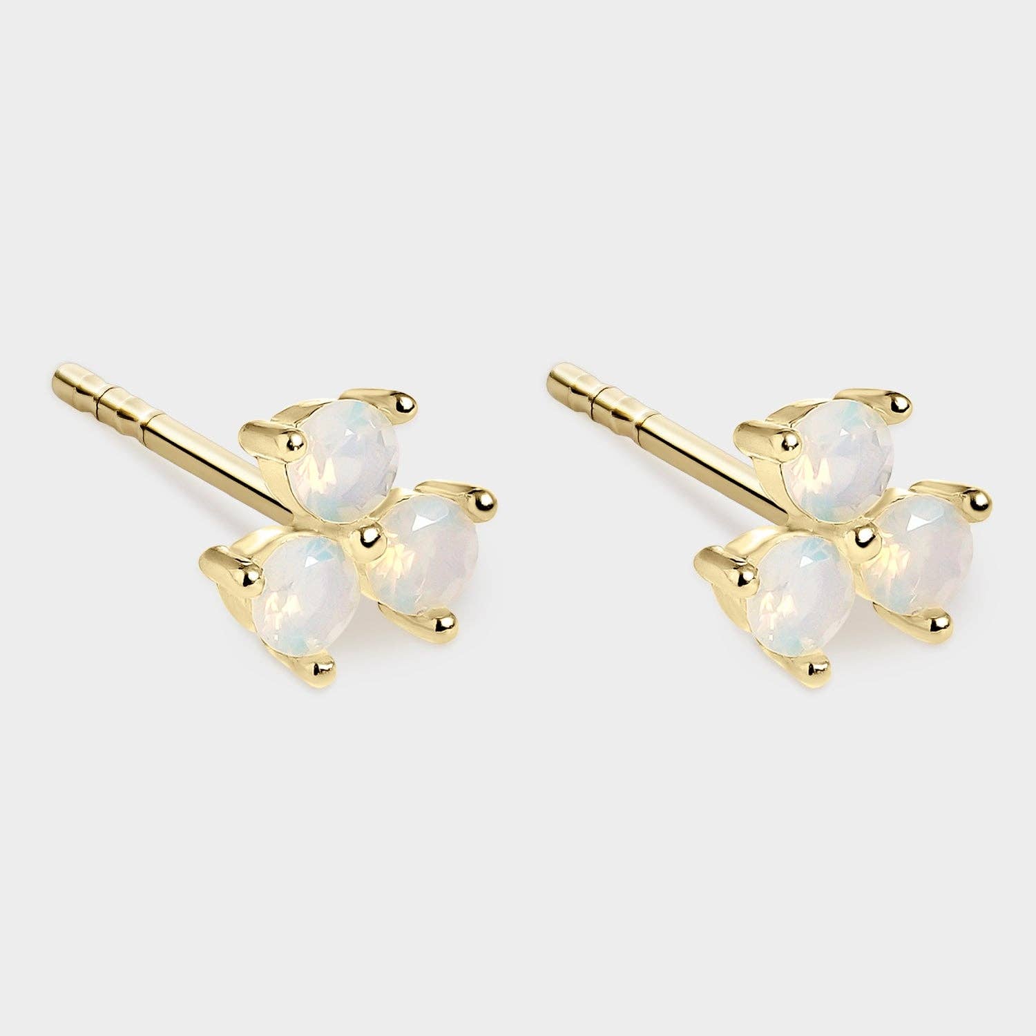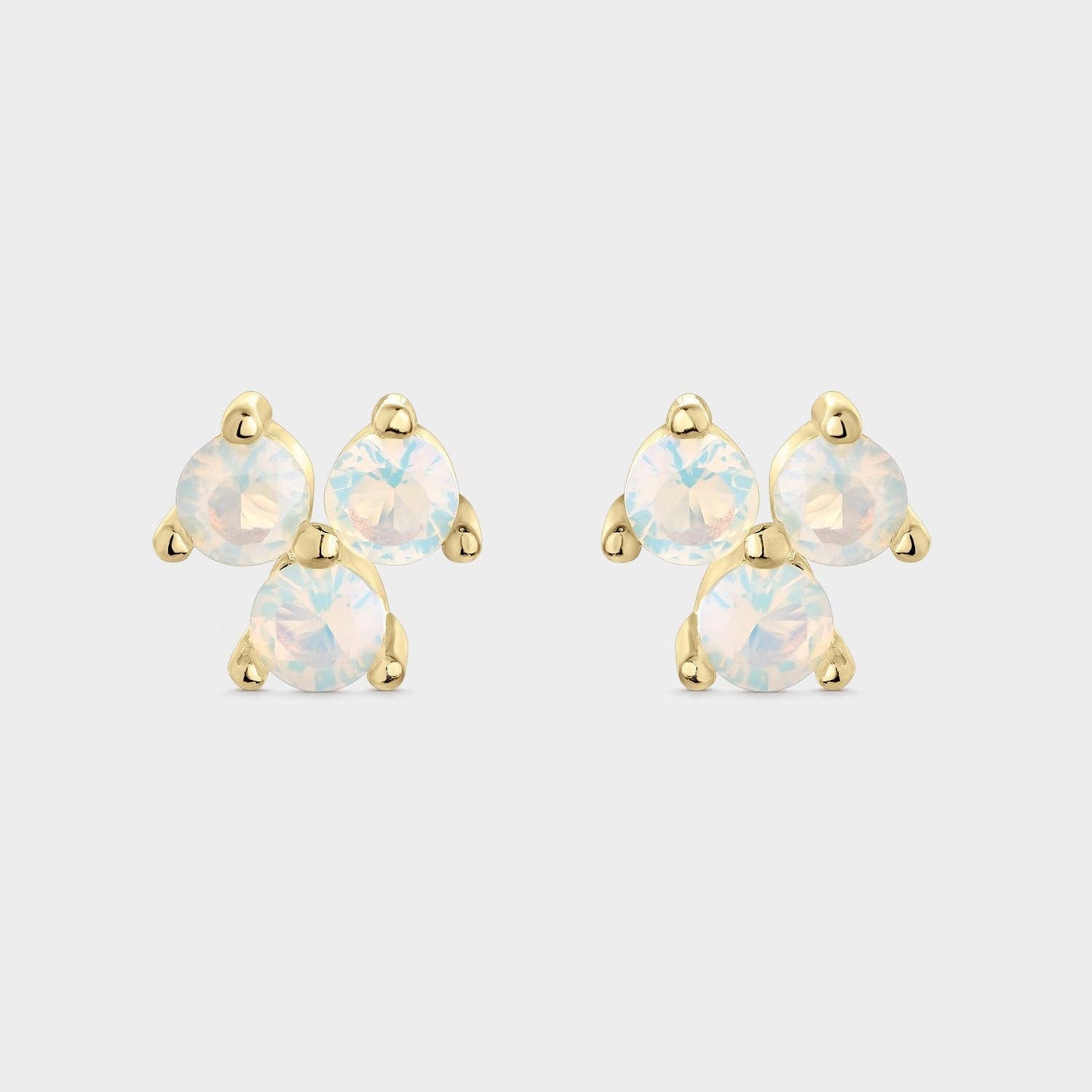 Diese Ohrringe sind aus hochwertigem Silber gefertigt und mit 18-karätigem Gold beschichtet, um für einen dauerhaften Glanz zu sorgen. Jeder Ohrring hat drei weiße Opale, die in drei Krallen eingefasst sind, was ihm einen einzigartigen und auffälligen Look verleiht. Weiße Opale sind bekannt für ihre Schönheit und ihre Fähigkeit, Licht auf blendende Weise zu reflektieren. Diese Ohrringe sind perfekt, um jedem Outfit einen Hauch von Eleganz zu verleihen, egal ob für einen besonderen Anlass oder für den Alltag. Die Kombination aus vergoldetem Silber und weißen Opalen schafft einen schönen und raffinierten Kontrast. Diese Ohrringe sind vielseitig einsetzbar und können problemlos mit anderen Accessoires und Schmuck kombiniert werden. Jedes Stück wird sorgfältig von erfahrenen Handwerkern unter Verwendung hochwertiger Materialien und fortschrittlicher Herstellungstechniken gefertigt.